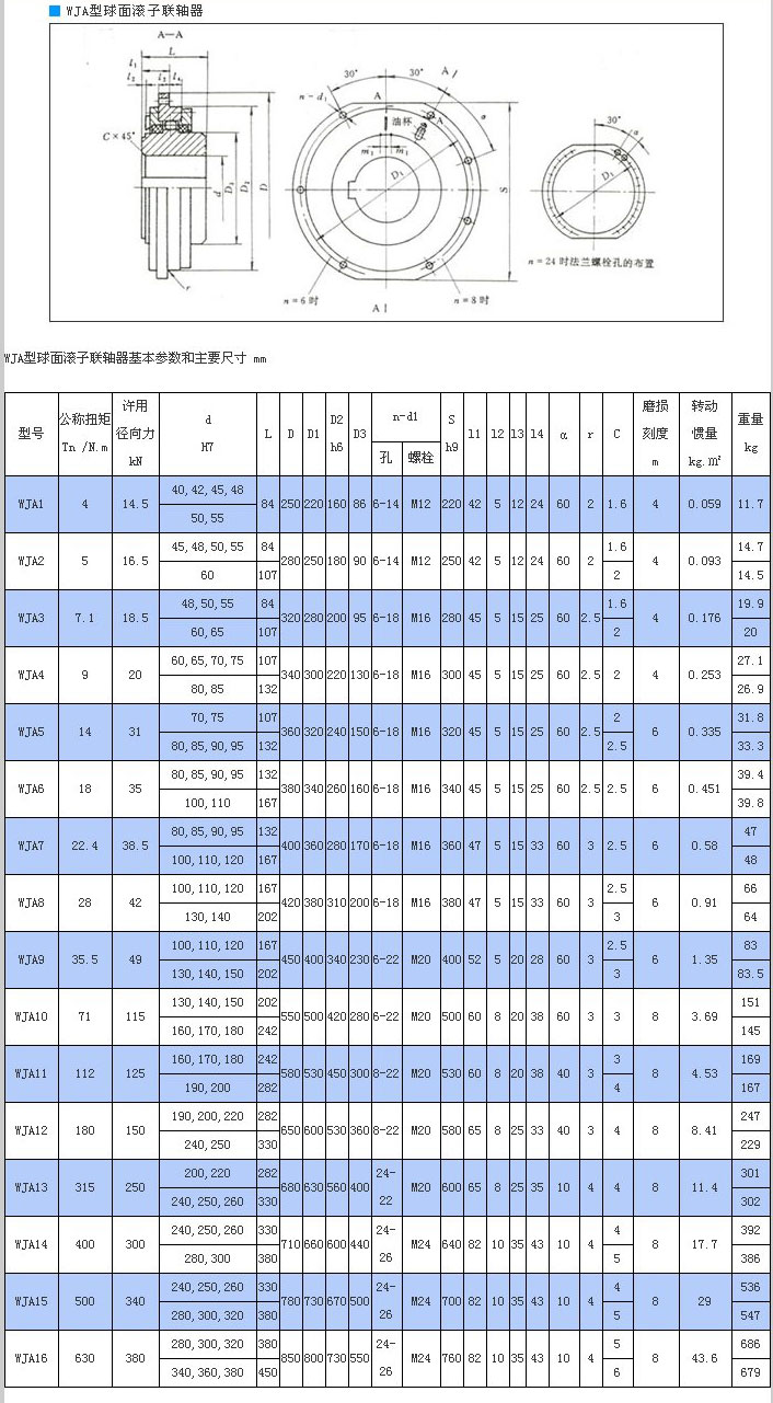 WJA型圓柱形軸孔聯(lián)接球面滾子聯(lián)軸器